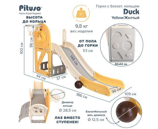 PITUSO Горка Duck с баскет.кольцом и лазом Yellow/Желтый