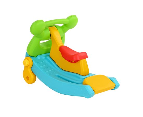 Качалка-горка сделана из безопасного, прочного, приятного на ощупь пластика ярких и приятных цветов.