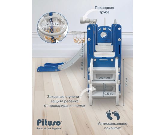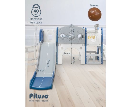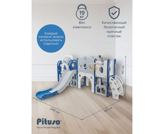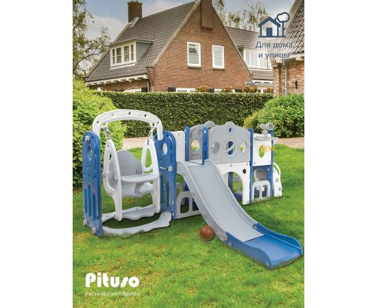 PITUSO Горка-Комплекс Little Prodigy (горка,качели,баскет.кольцо),Blue/White/Синий,246*150*85h