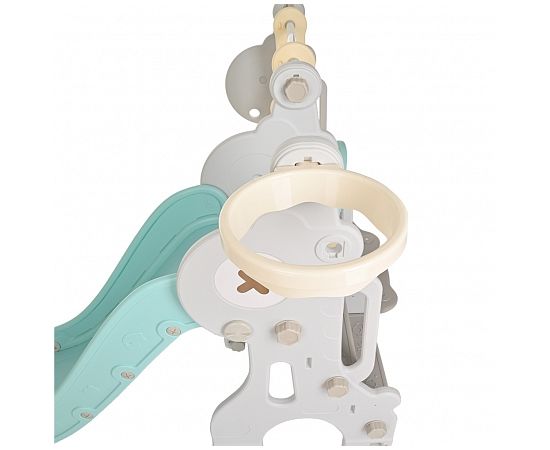 - Комплектация: пластиковая горка, качели, кольцо баскетбольное (1 шт.).