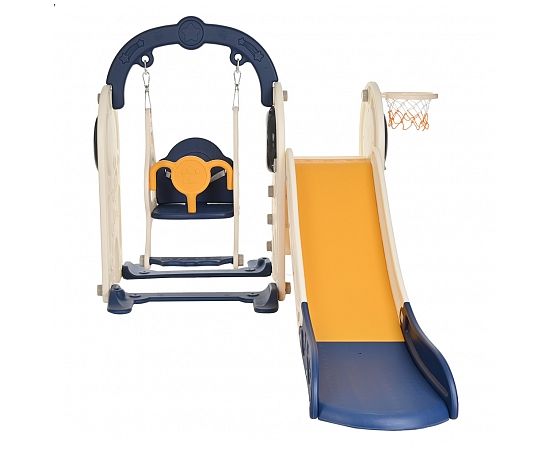- Комплектация: пластиковая горка, качели, кольцо баскетбольное (1 шт.).