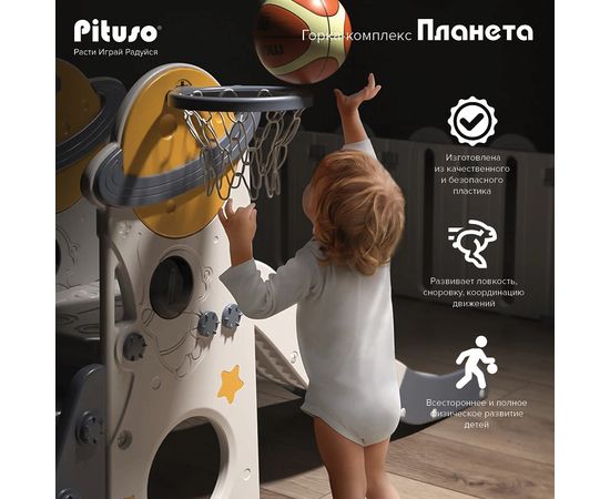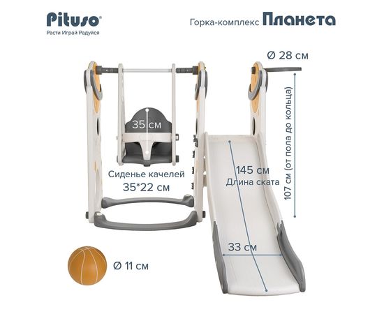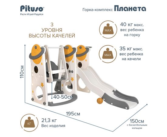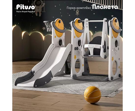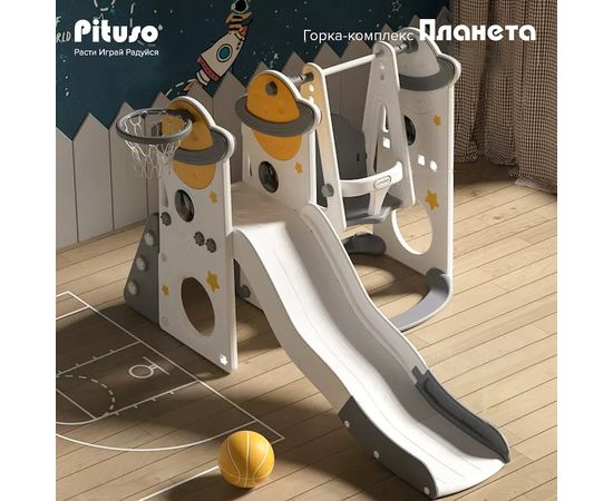 PITUSO Горка-комплекс Планета (горка, качели, баскет. кольцо) Серый/Белый (150*195*110 см)