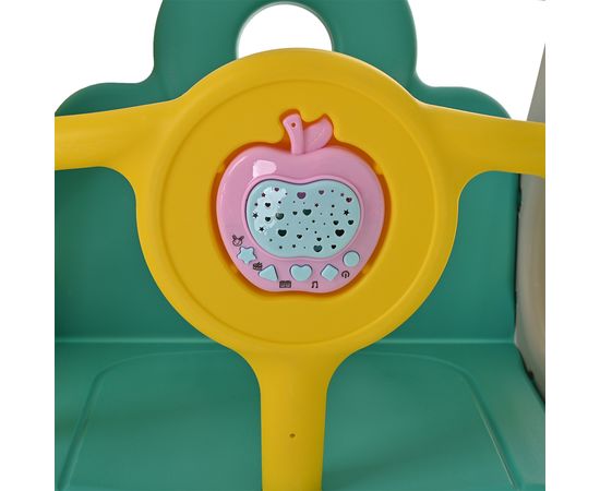 Комплектация: пластиковая горка, качели, кольцо баскетбольное (1 шт.)., муз.элемент
