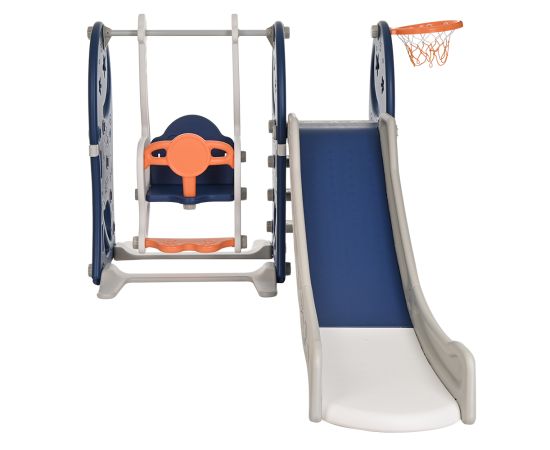 - Комплектация: пластиковая горка, качели, кольцо баскетбольное (1 шт.).