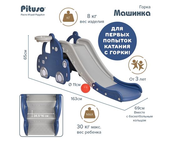 PITUSO Горка Машинка с баскет.кольцом Blue/Синий, 163*69*65 см