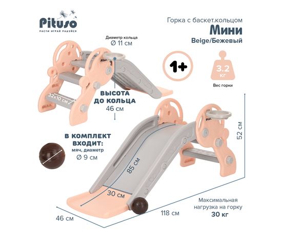 PITUSO Горка Мини с баскет. кольцом Beige/Бежевый