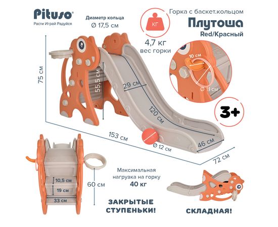 PITUSO Горка Плутоша с баскет.кольцом Red/Красный, 153*72*75 см
