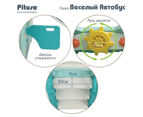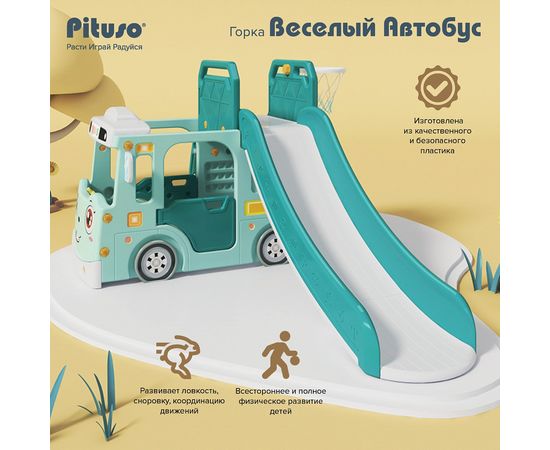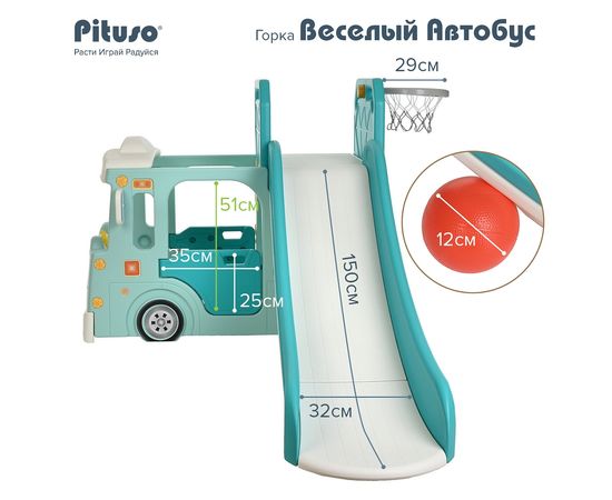 PITUSO Горка Веселый Автобус с баскет.кольцом Green/Бирюзовый,210*150*100h