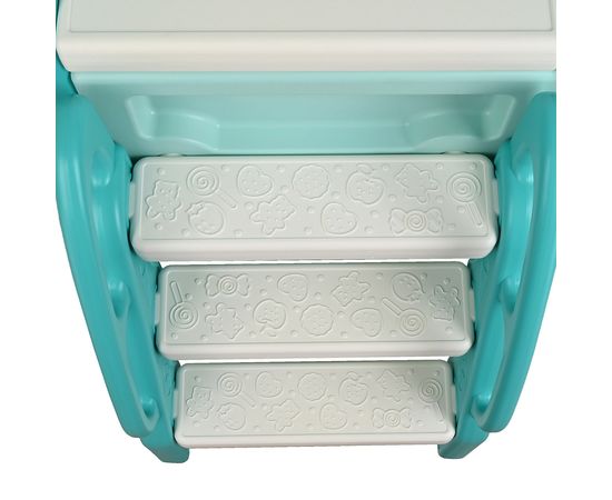 Для удобства использования имеется лесенка с поручнями. Противоскользящие ступени и широкое основание горки создают устойчивость конструкции.