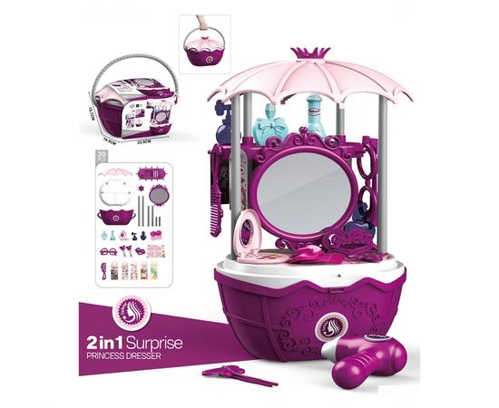 В наборе корзина- 1 шт.,а также зеркало - 1 шт, фен-1 шт., украшения и элементы косметики-27эл.
