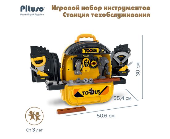 PITUSO Игровой набор инструментов Станция техобслуживания 2в1 (чемоданчик)35,4*50,6*30 см