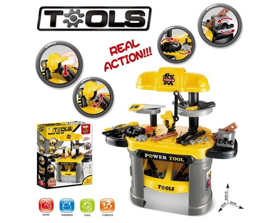 Игровой набор "Юный плотник" с инструментами и аксессуарами (64 эл-та) подойдет мальчикам, которые с самого детства питают интерес к настоящей мужской работе.