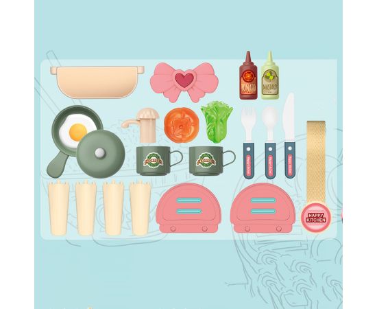 Игровой набор Pituso «Кухня» в чемоданчике HW21045506 предназначен для юных поваров в возрасте от 3 лет. В него входит варочная поверхность, мойка с краном, 2 полочки по бокам, полочка над печкой, а также 24 предмета посуды и аксессуары, которые помещаются в удобный розовый чемоданчик с ручкой.