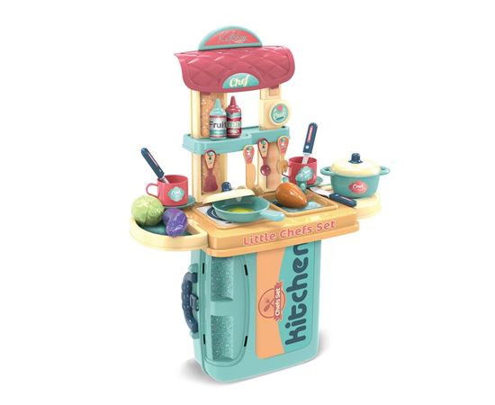 Чемоданчик - 1 шт.,кухонные принадлежности и продукты - 20 шт. Компактно складывается в чемоданчик. Его удобно брать с собой, ведь его можно носить за ручку. Юный повар может прийти в любое место дома.