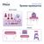 В набор входит: Столик- 1 шт., маленький пуфик - 1 шт., зеркало - 1 шт, фен-1шт., украшения и элементы косметики-12 эл.