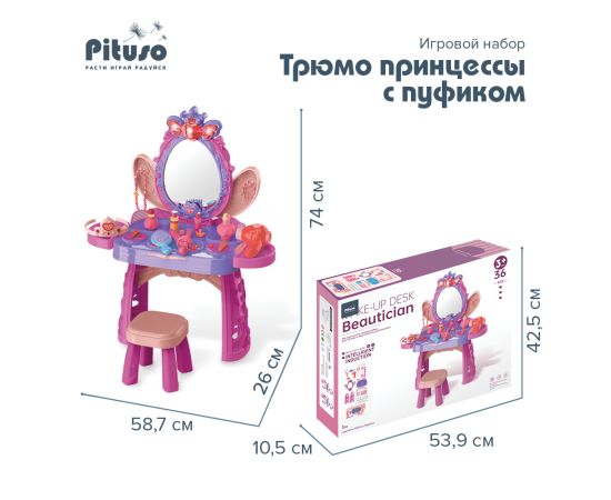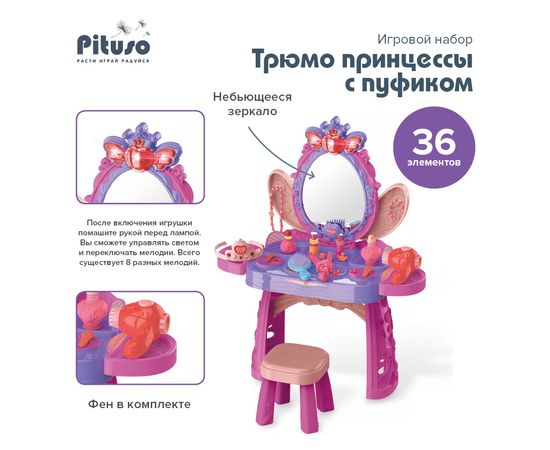 PITUSO Игровой набор Трюмо принцессы с пуфиком, муз.,свет, Purple/Фиолет