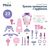 В набор входит: Столик- 1 шт., маленький пуфик - 1 шт., зеркало - 1 шт, фен-1шт., украшения и элементы косметики-12 эл.
