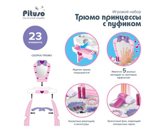 PITUSO Игровой набор Трюмо принцессы с пуфиком (муз.свет) HWA868332