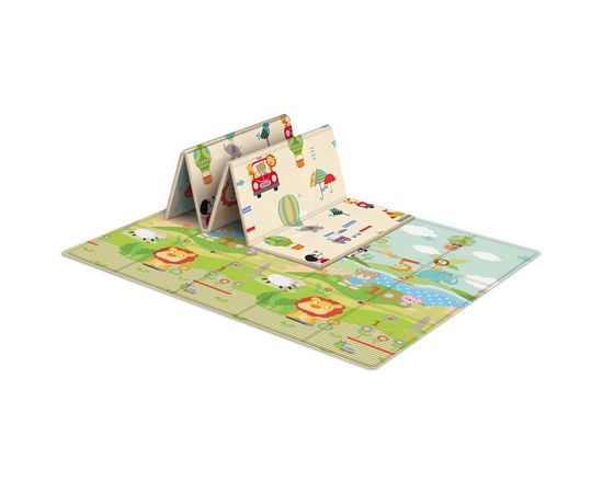 Игровой коврик с обеих сторон украшен милыми узорами, которые пробуждают любопытство и стимулирует малышей к изучению окружающего мира. Достаточно просто перевернуть коврик на другую сторону и ваш малыш заново увлечен. Родители могут вместе с малышом лежать, играть на коврике, ведь он очень большой, места хватит всем!