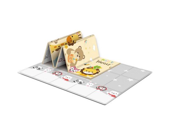 Игровой коврик с обеих сторон украшен милыми узорами, которые пробуждают любопытство и стимулирует малышей к изучению окружающего мира. Достаточно просто перевернуть коврик на другую сторону и ваш малыш заново увлечен. Родители могут вместе с малышом лежать, играть на коврике, ведь он очень большой, места хватит всем!