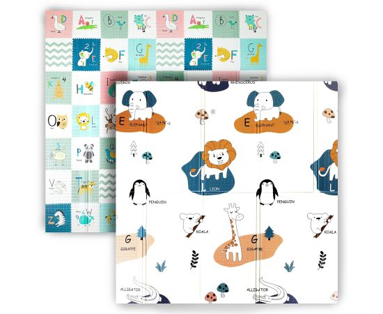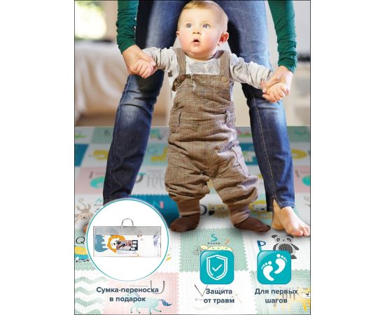 Игровой коврик с обеих сторон украшен милыми узорами, которые пробуждают любопытство и стимулирует малышей к изучению окружающего мира. Достаточно просто перевернуть коврик на другую сторону и ваш малыш заново увлечен. Родители могут вместе с малышом лежать, играть на коврике, ведь он очень большой, места хватит всем!