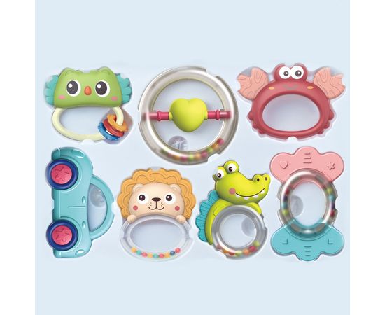 Развивающий набор для самых маленьких состоит из 7 погремушек-прорезывателей.