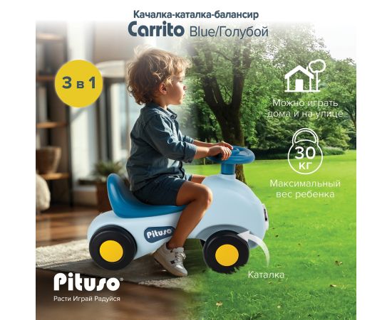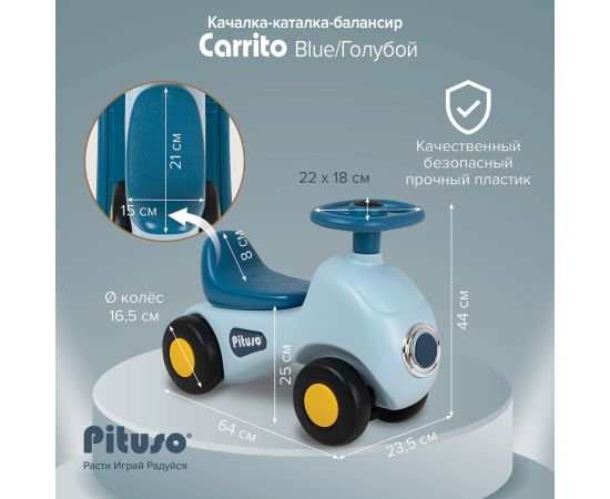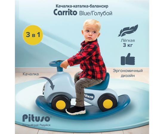 Детская качалка-каталка Carrito от PITUSO— это прекрасное первое транспортное средство для вашего малыша! Машинка обладает стильным внешним видом и эргономичным дизайном, что делает ее идеальным спутником для ваших детей в их первых приключениях на колесах.