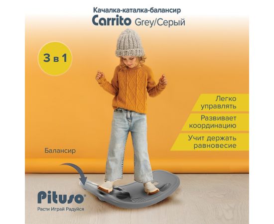 Детская качалка-каталка Carrito от PITUSO— это прекрасное первое транспортное средство для вашего малыша! Машинка обладает стильным внешним видом и эргономичным дизайном, что делает ее идеальным спутником для ваших детей в их первых приключениях на колесах.