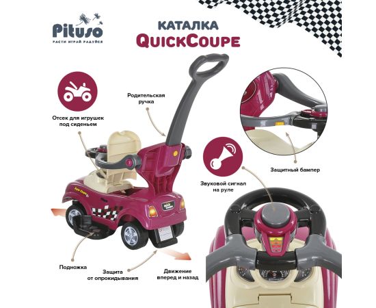 PITUSO Каталка QuickCoupe (сигнал, спинка-толкатель) 3-6 лет, Purple/Пурпурный