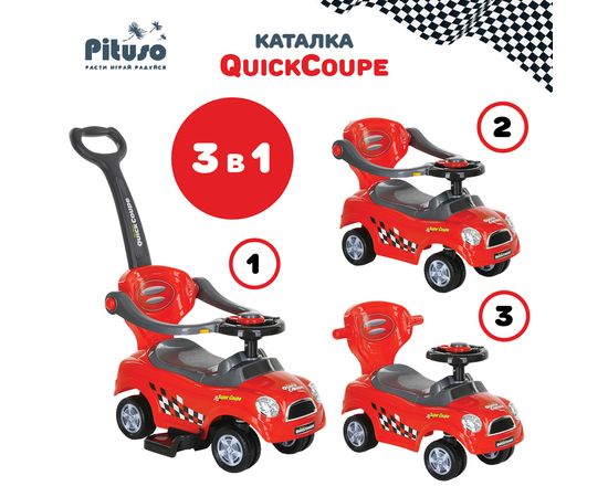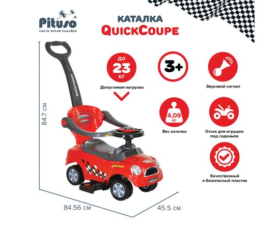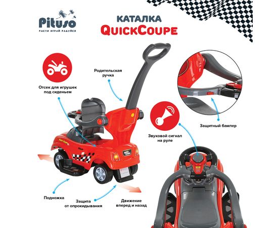 PITUSO Каталка QuickCoupe (сигнал, спинка-толкатель) 3-6 лет, Red/Красный