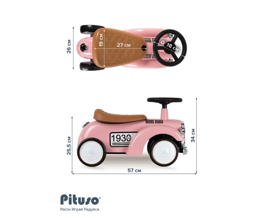 PITUSO Каталка Ретро Pink/Розовый,EVA колеса,57*26*34