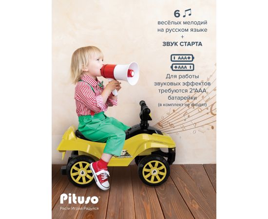 Каталка-PITUSO — универсальная игрушка для детей возрастом от одного года. Подойдет как мальчикам, так и девочкам. Изготовлена из прочного и лёгкого пластика