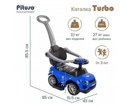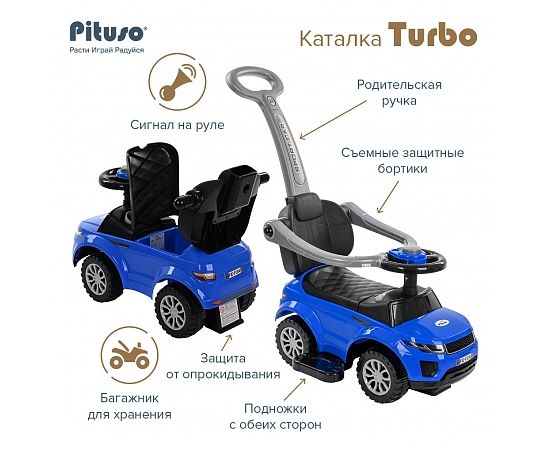 PITUSO Каталка TURBO с бамп. с ручкой (сигнал) Blue/Синий