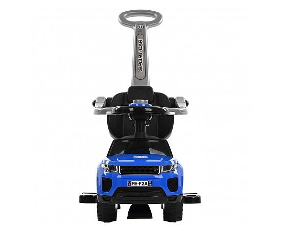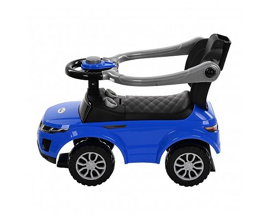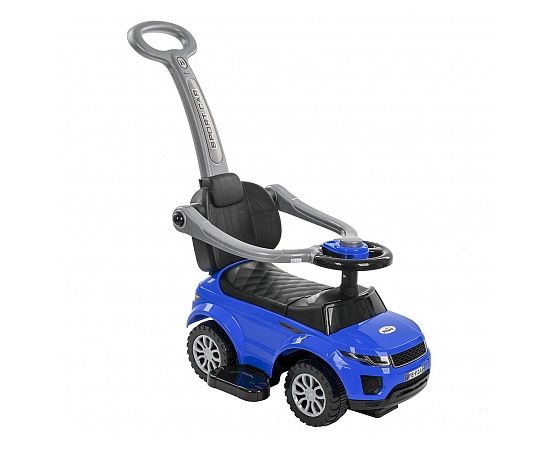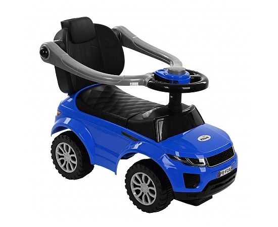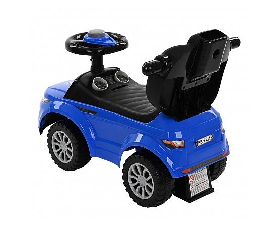 Модель выполнена в форме Range Rover, имеет пластиковые колеса и просторное сиденье для комфортной посадки. На руле расположен клаксон. Под сиденьем есть вместительный отсек для хранения любимых игрушек. Специальный стопор сзади защитит каталку от опрокидывания.