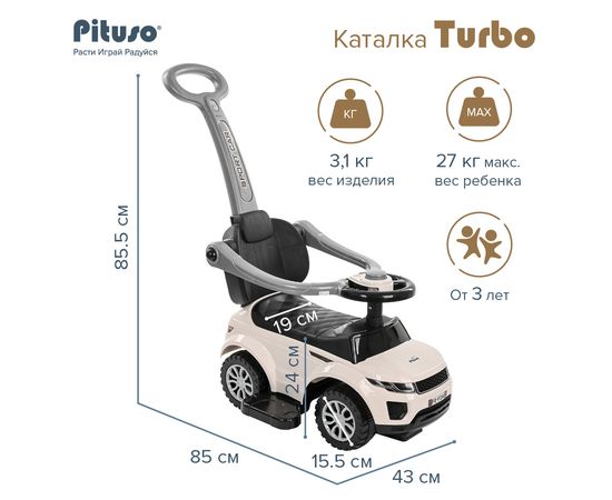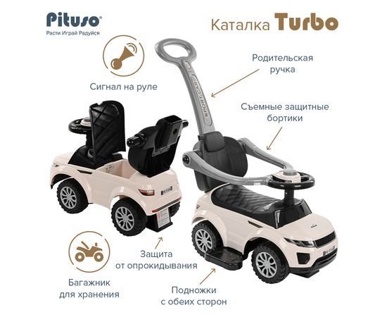PITUSO Каталка TURBO с бамп. с ручкой (сигнал) White/Белый