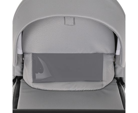 Для малыша с рождения на шасси устанавливается полноценная люлька (размеры по матрасику 76×35 см). Люльку можно снять одной рукой, нажимая на кнопки поочередно. В дополнительном сегменте в капюшоне есть вентиляционно-смотровое окошко. В капор встроена ручка для переноски, которая для удобства родителей имеет накладку из практичной эко-кожи. Защиту от ветра и холода обеспечивает накидка на ножки с отворотом, которая фиксируется с помощью магнита. Чехол люльки крепится с помощью кнопок. На чехле с двух сторон имеются молнии позволяющие не снимать чехол полностью для доступа к ребенку. Высокий отворот защищающий от ветра и смотровое окошко для зрительного контакта мамы с ребенком.