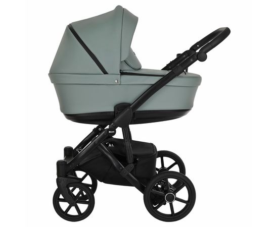 Для малыша с рождения на шасси устанавливается полноценная люлька (размеры по матрасику 76×35 см). Люльку можно снять одной рукой, нажимая на кнопки поочередно. В дополнительном сегменте в капюшоне есть вентиляционно-смотровое окошко. В капор встроена ручка для переноски, которая для удобства родителей имеет накладку из практичной эко-кожи. Защиту от ветра и холода обеспечивает накидка на ножки с отворотом, которая фиксируется с помощью магнита. Чехол люльки крепится с помощью кнопок. На чехле с двух сторон имеются молнии позволяющие не снимать чехол полностью для доступа к ребенку. Высокий отворот защищающий от ветра и смотровое окошко для зрительного контакта мамы с ребенком.