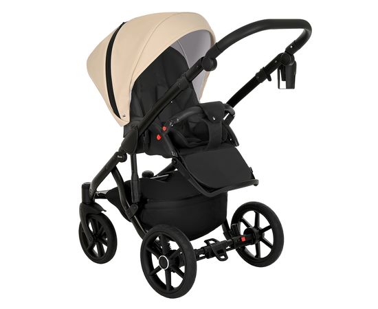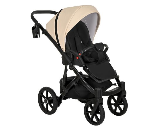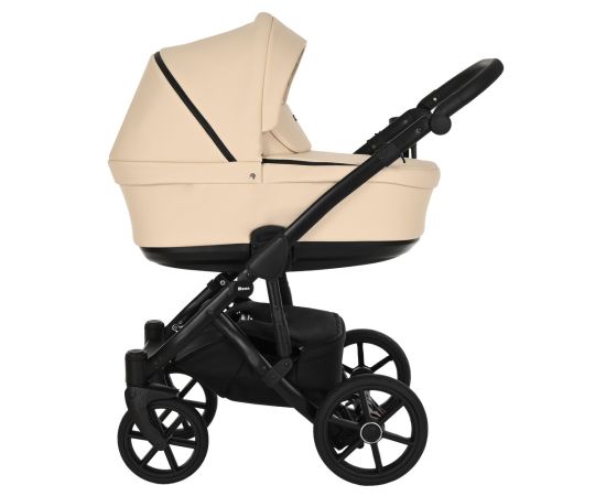Для малыша с рождения на шасси устанавливается полноценная люлька (размеры по матрасику 76×35 см). Люльку можно снять одной рукой, нажимая на кнопки поочередно. В дополнительном сегменте в капюшоне есть вентиляционно-смотровое окошко. В капор встроена ручка для переноски, которая для удобства родителей имеет накладку из практичной эко-кожи. Защиту от ветра и холода обеспечивает накидка на ножки с отворотом, которая фиксируется с помощью магнита. Чехол люльки крепится с помощью кнопок. На чехле с двух сторон имеются молнии позволяющие не снимать чехол полностью для доступа к ребенку. Высокий отворот защищающий от ветра и смотровое окошко для зрительного контакта мамы с ребенком.