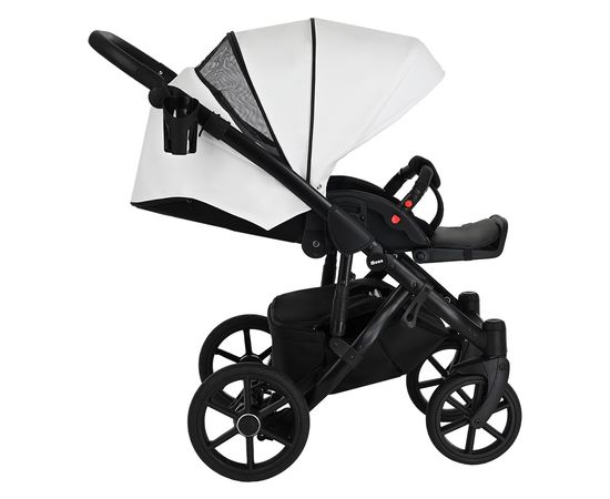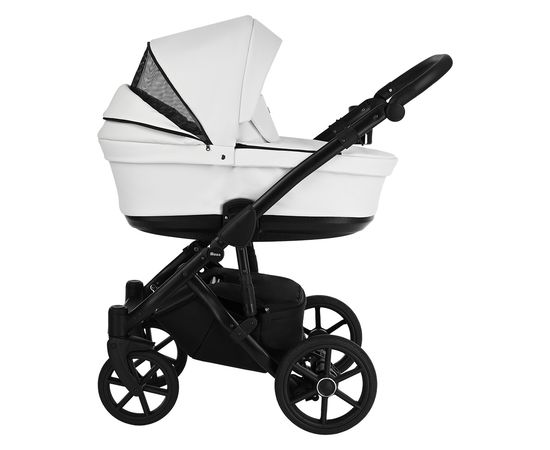 Для малыша с рождения на шасси устанавливается полноценная люлька (размеры по матрасику 76×35 см). Люльку можно снять одной рукой, нажимая на кнопки поочередно. В дополнительном сегменте в капюшоне есть вентиляционно-смотровое окошко. В капор встроена ручка для переноски, которая для удобства родителей имеет накладку из практичной эко-кожи. Защиту от ветра и холода обеспечивает накидка на ножки с отворотом, которая фиксируется с помощью магнита. Чехол люльки крепится с помощью кнопок. На чехле с двух сторон имеются молнии позволяющие не снимать чехол полностью для доступа к ребенку. Высокий отворот защищающий от ветра и смотровое окошко для зрительного контакта мамы с ребенком.