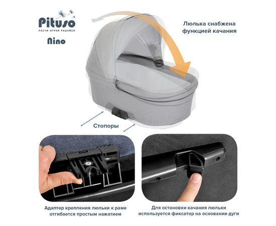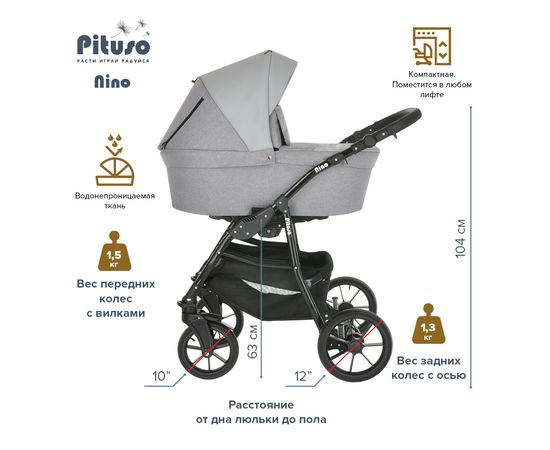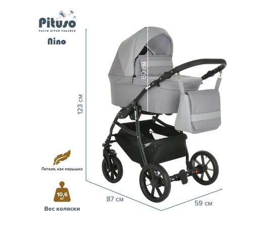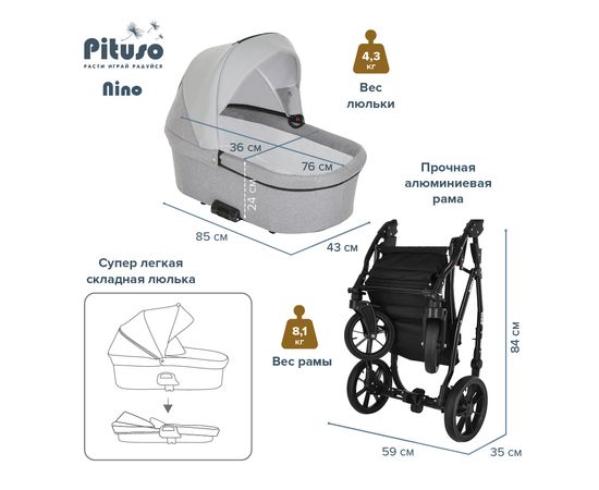 Коляска PITUSO NINO - покорит сердца молодых родителей своей практичностью и комфортом. Модель отличается стильным и современным дизайном, скромными габаритами и сравнительно небольшим весом