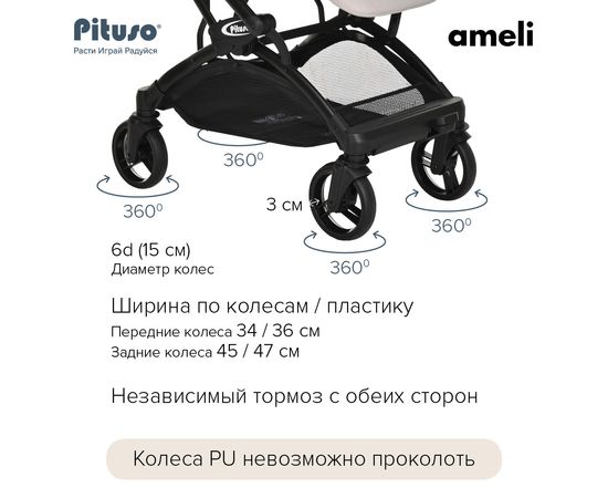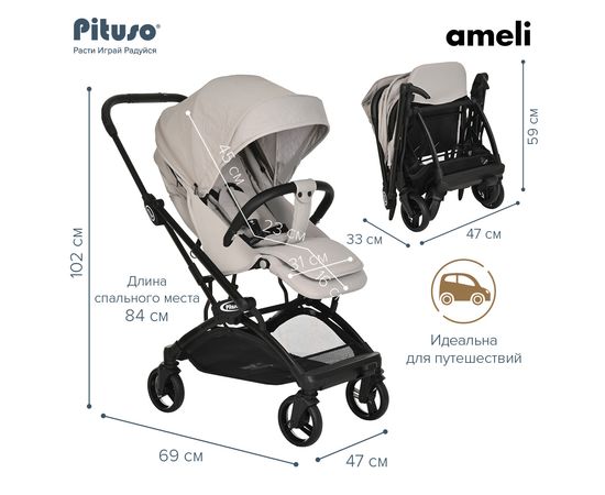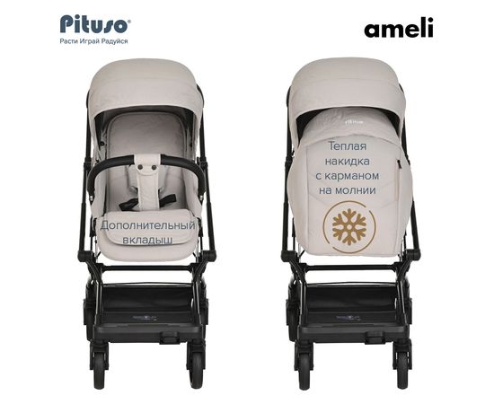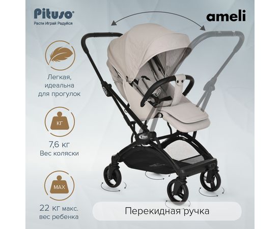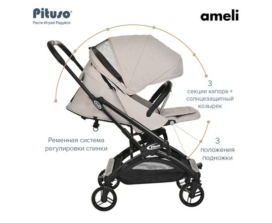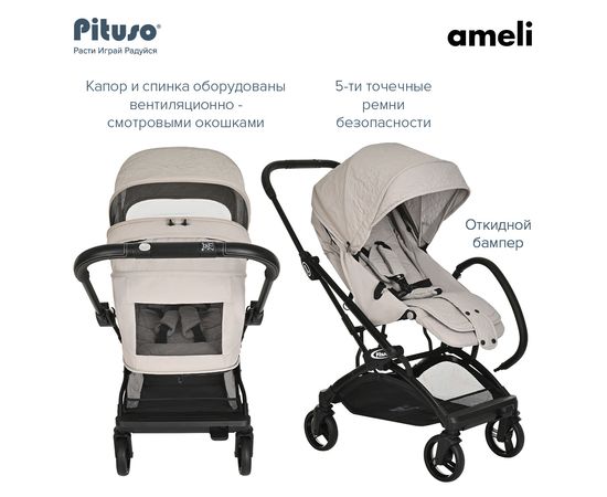 Современная стильная прогулочная коляска Pituso Ameli для детей от 7 месяцев - лучший вариант для ежедневных прогулок! Благодаря перекидной ручке малыш может двигаться как лицом к маме, так и по ходу движения, что очень удобно в ветреную или снежную погоду. Оснащена большим капюшоном до бампера, который защитит ребенка от палящего солнца или осадков. Пятиточечные ремни с мягкими накладками надежно зафиксируют малыша и обеспечат высокий уровень безопасности. Модель удобно хранить в доме или квартире благодаря компактному размеру и легкой сборке.