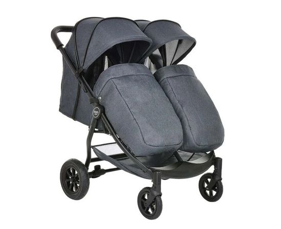 Также прекрасной защитой от ветра и холода будут утепленные накидки на ножки в комплекте. Передние колеса поворотные, что позволит легко управлять коляской. Модель компактно складывается и очень удобна для поездок. Каждое сидение регулируется отдельно, спинка регулируется с помощью натяжных ремней и раскладывается в полноценное спальное место. Подножки регулируются независимо друг от друга.
