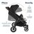 На раме размещено 2 сидения с индивидуальными системами регулировок: подножки, капюшона и спинки.