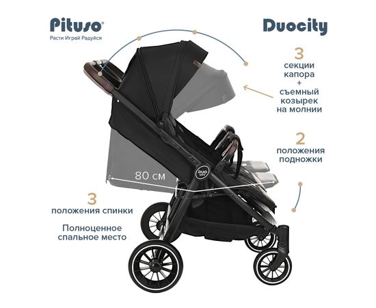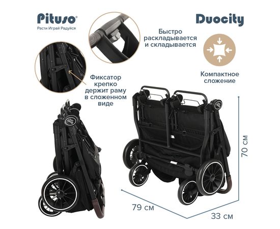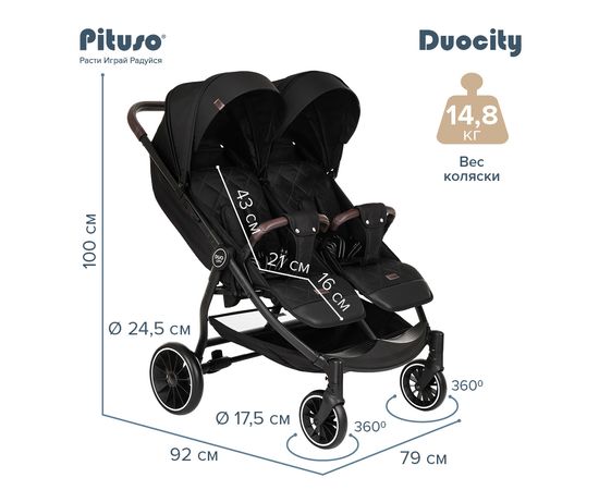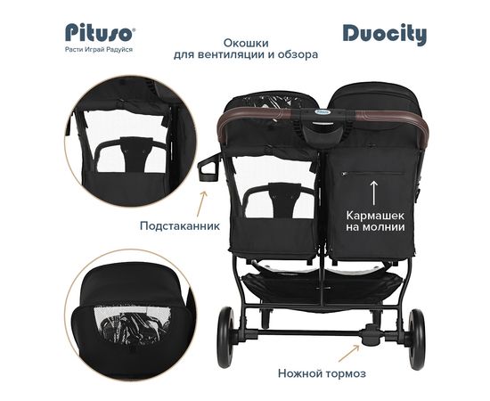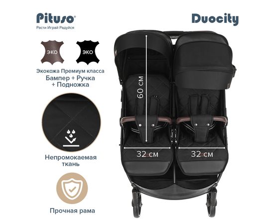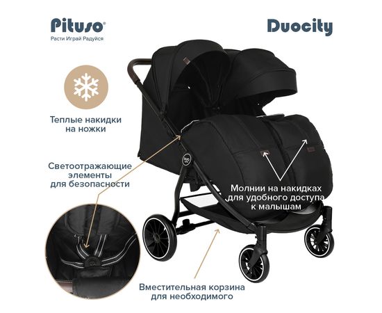 PITUSO Коляска детская DUOCITY для двойни (прогулочная), Black/Черный/чехол на ножки/EVA