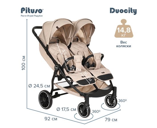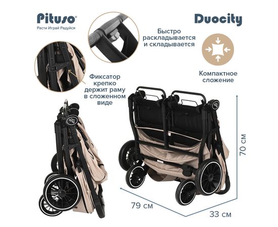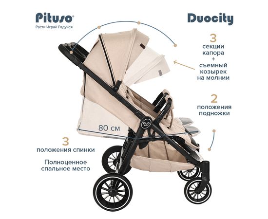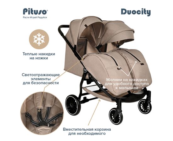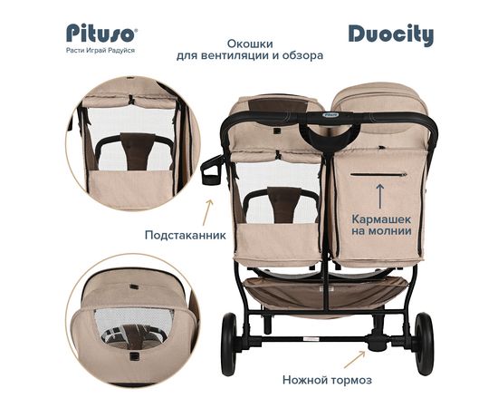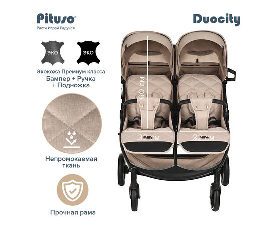 PITUSO Коляска детская DUOCITY для двойни (прогулочная), Cappuccino/Капучино/чехол на ножки/EVA