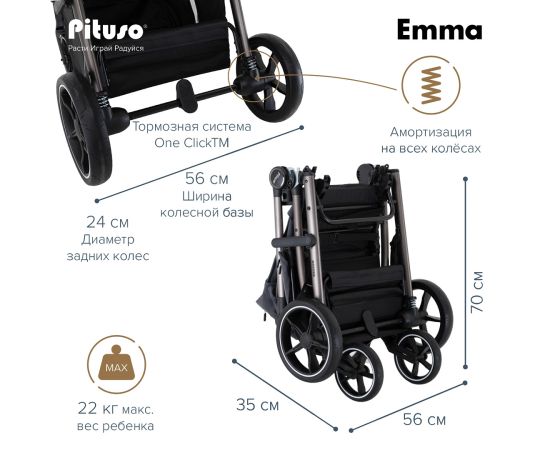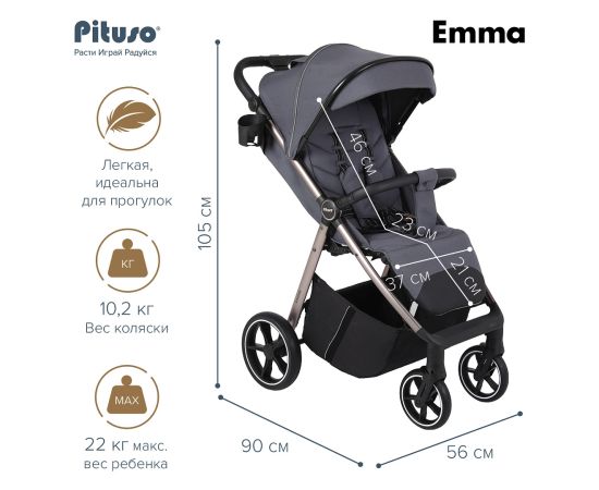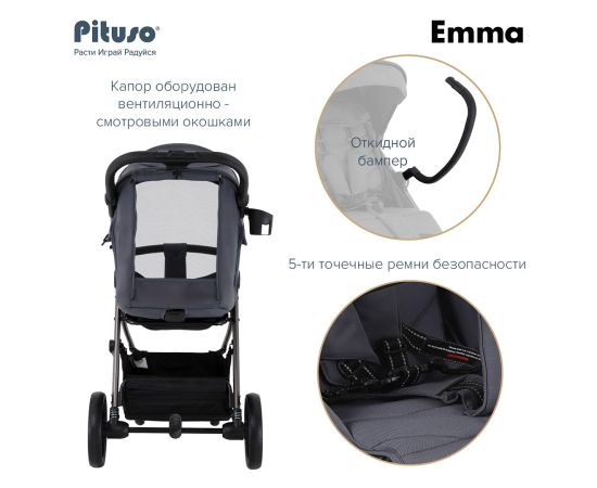 Прогулочная коляска Pituso Emma – качественная и стильная прогулочная модель, идеально адаптирована и для прогулок и путешествий на свежем воздухе, имеет надежную прочную конструкцию. Данная модель представлена в разных расцветках и влюбляет в себя с первого взгляда. Коляска имеет компактный, легкий каркас. Она подарит комфорт и удобство не только ребенку, но и его маме.