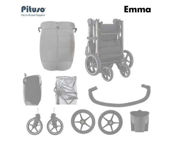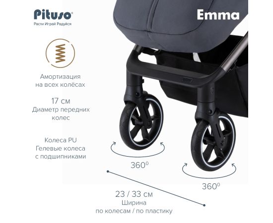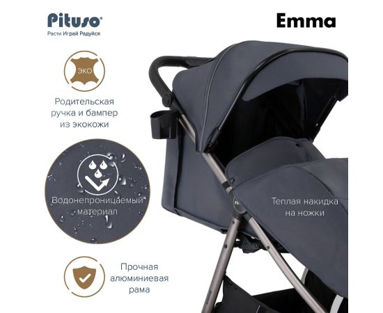 PITUSO Коляска детская EMMA (прогулочная),Graphite/Графит/PU