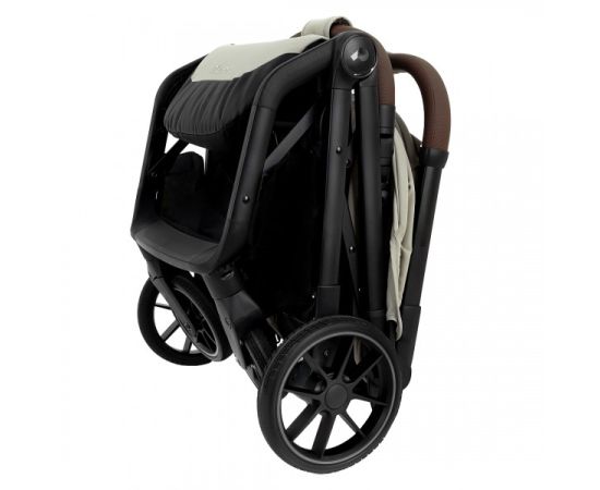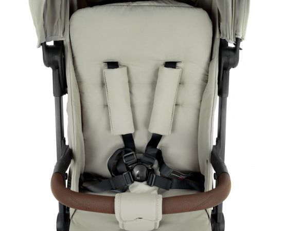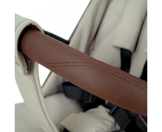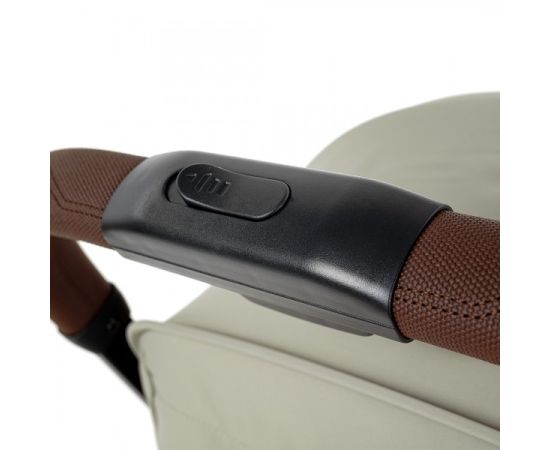 - Прочная ручка из эко-кожи приятна на ощупь. Удобная конструкция помогает легко складывать коляску одним нажатием кнопки.