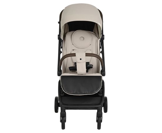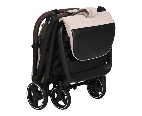 Прочная ручка из эко-кожи приятна на ощупь. Удобная конструкция помогает легко складывать коляску одним нажатием кнопки.