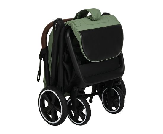 Прочная ручка из эко-кожи приятна на ощупь. Удобная конструкция помогает легко складывать коляску одним нажатием кнопки.